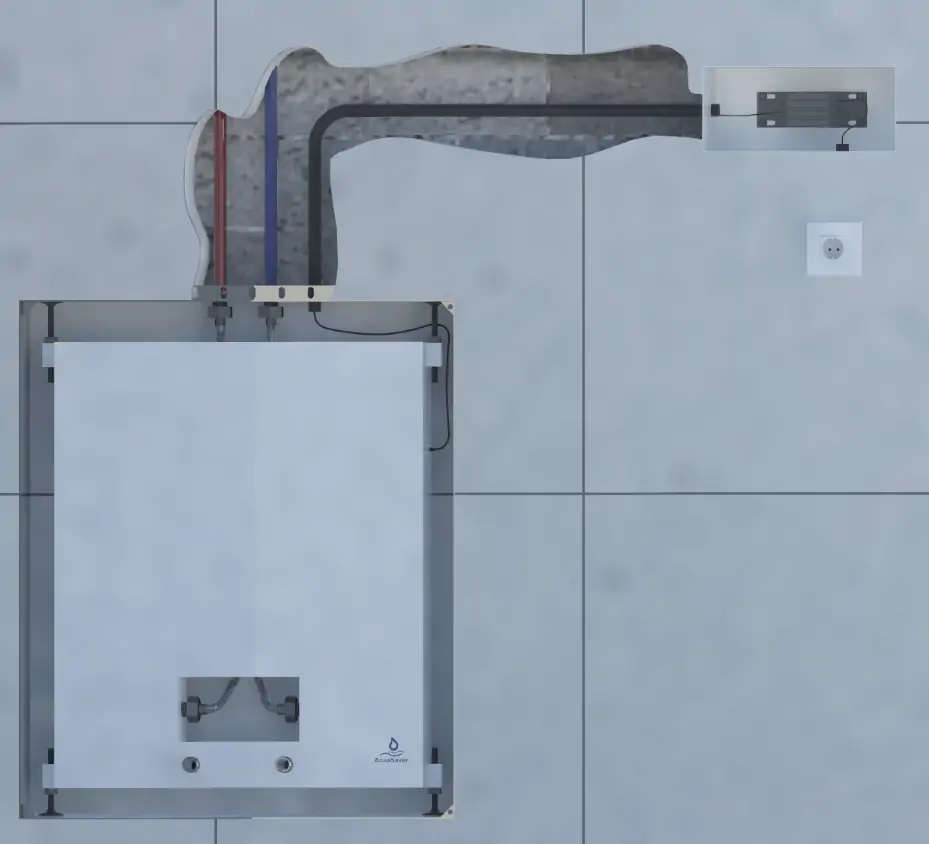 Automatic activation of the device by opening the hot water tap for simple and uncomplicated operation. Also includes manual on/off push button.
